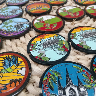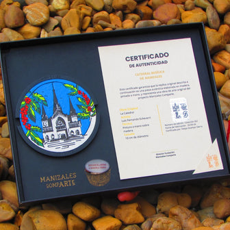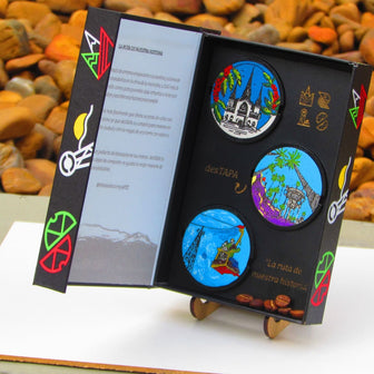 Cada réplica de las Tapitas de Arte es una pieza artesanal única, creada a mano por artistas locales que transforman el metal y el color en historia viva. Son versiones fieles de las tapas originales fundidas en el espacio público dentro del proyecto La Ruta de Nuestra Historia.